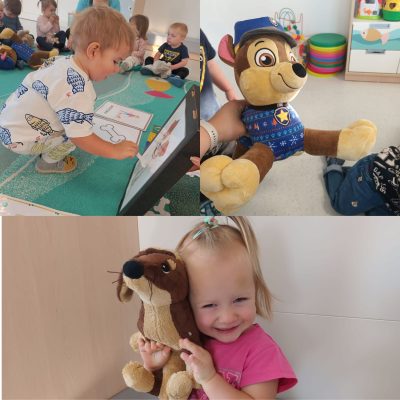 Podczas karmienia pluszowych piesków, Maluchy uczyły się troski i odpowiedzialności, a rozmowy o różnych rasach i ich zwyczajach rozwijały ciekawość oraz umiejętność komunikacji.