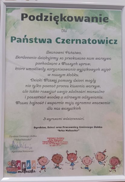 Serdecznie dziękujemy Państwu Czernatowicz za podarowanie nam wspaniałych główek kapusty i marchewek. Dzięki Państwu dzieci mogły przeżyć tę niesamowitą przygodę, dotknąć tradycji i uczyć się poprzez zabawę.