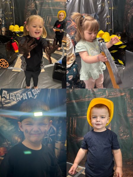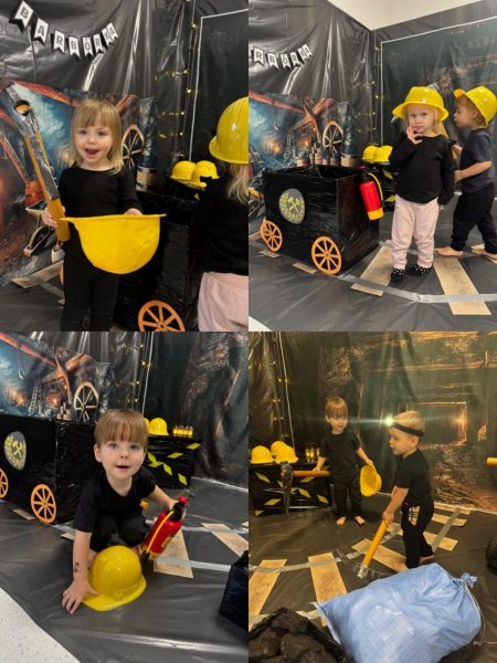 Tego dnia sala zamieniła się w małą kopalnię, a dzieci mogły wcielić się w rolę prawdziwych górników. Poznawały górnicze atrybuty – kaski, lampki i narzędzia – oglądały węgiel oraz „wózki górnicze”, a przede wszystkim mogły swobodnie odkrywać i doświadczać poprzez zabawę.